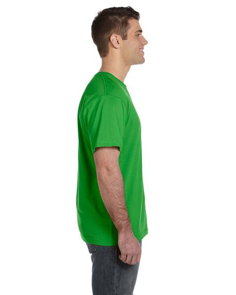 4.5 oz., 100% combed ringspun cotton fine jersey ; Ash is 98/2; CVC Colors are 60/40; Heather is 93/7 combed ringspun cotton/polyester; Ash and White are sewn with 100% cotton thread; Ribbed collar; Shoulder-to-shoulder self-fabric back neck tape; Double needle sleeves and bottom hem; Side seam construction; EasyTear? label; Machine washable/ tumble dry low; Fit: Adult Unisex - True to Size;
